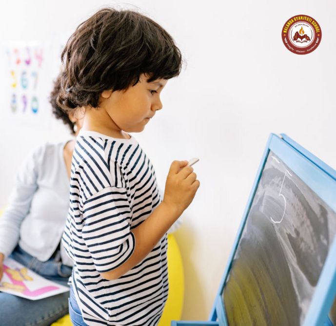 A modern learning space rooted in traditional Indian values. Nalanda Gyanjyoti School, nurture young learners through curiosity-driven, activity-based education. – laying foundation from Kindergarten to Class 5